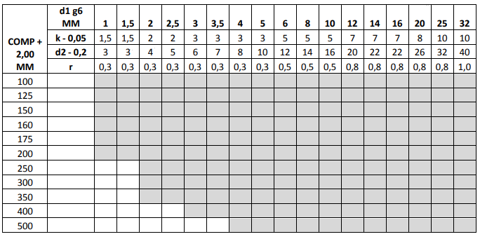 d1= Ø 5,0 L= 150 d2= Ø 10,0 k= 3,0